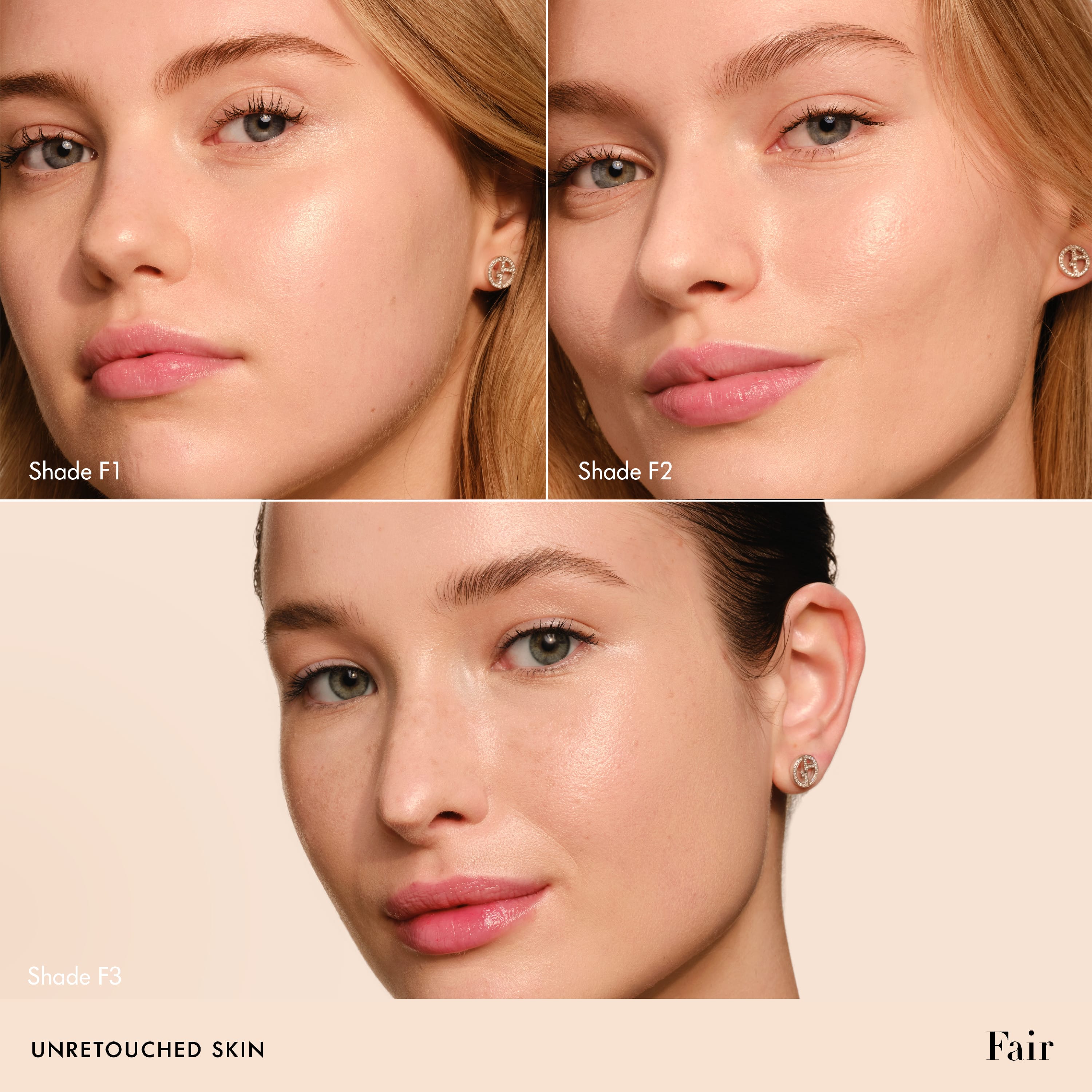 Innblásið af léttri áferð Armani organza silksins, er formúla skin tint jafn létt og teygjanleg og efnið sjálft. Míkró silkitækni þess skapar uppbyggjanlega og ósýnilega áferð sem veitir þyngdarlausa tilfinningu. Þessar ljósstillandi perlur fanga það ljós sem hæfir húðinni best og gefa geislandi áferð. Á sama tíma veitir 92% silki serumformúlan, með hýalúrónsýru, níasínamíði, hvítum liljum og Cg-vítamíni, allt að 24 stunda raka og létta tilfinningu á húðinni.