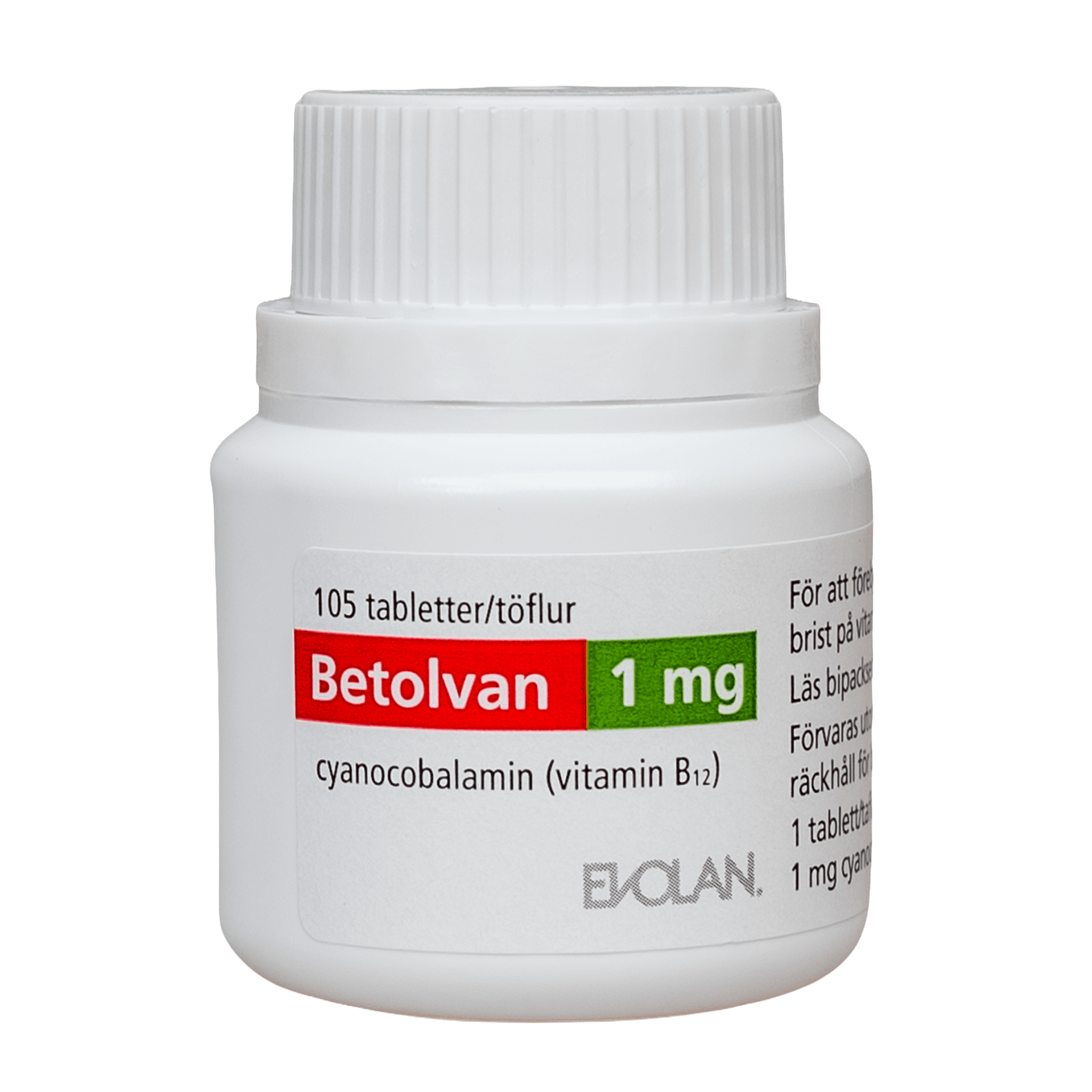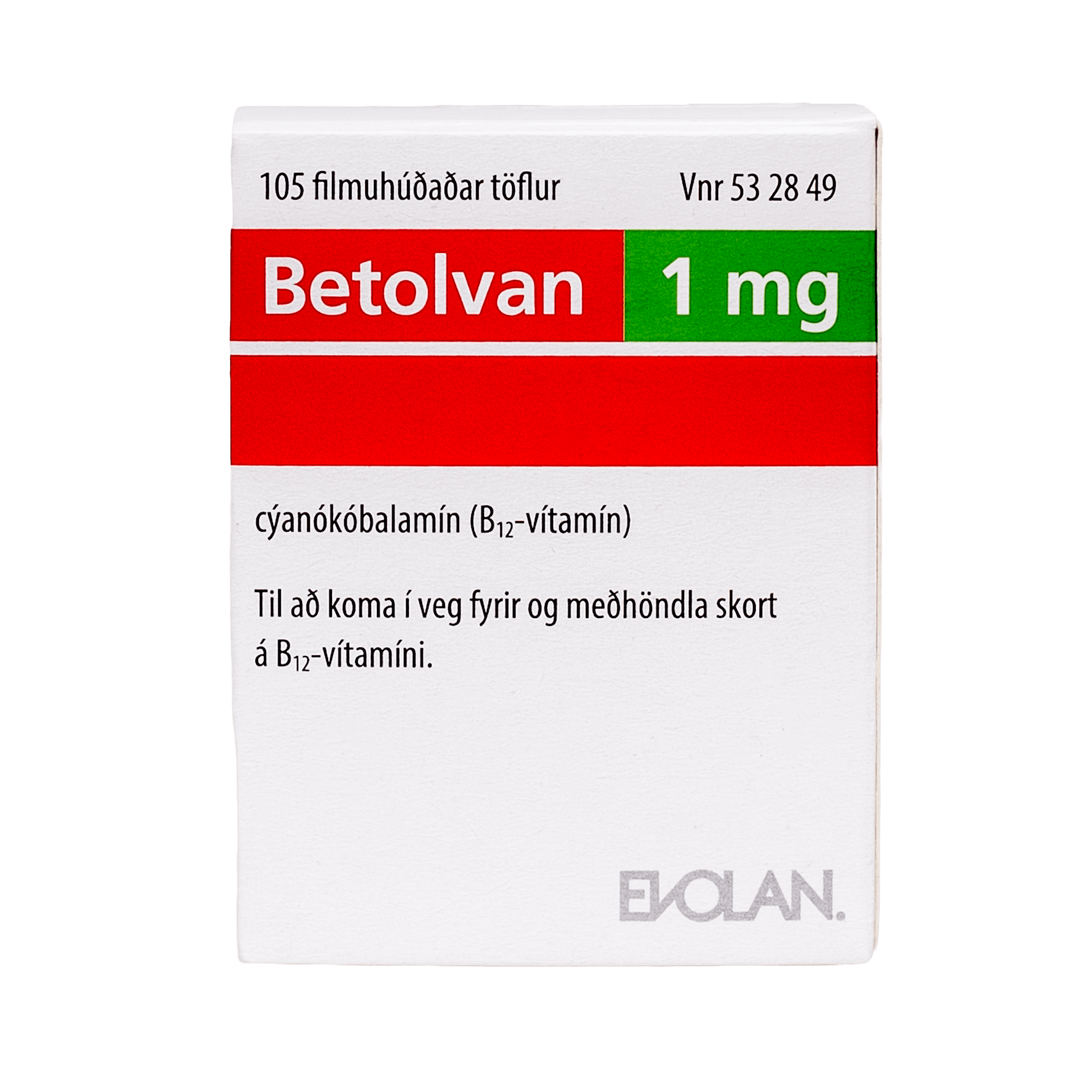 Skammtar Meðferð við skorti: Venjulega 1-2 töflur á dag þar til skorturinn hefur verið leiðréttur að fullu. Síðan viðhaldsskammtur. Ef taugakvilli er staðfestur, eða grunur er um slíkt, skal meðferð vera með stungulyfi. Viðhaldsskammtar/fyrirbyggjandi meðferð: Venjulega 1 tafla á dag. Sérstakir sjúklingahópar Aldraðir sjúklingar Ekki er nauðsynlegt að breyta skömmtum. Sjúklingar með skerta nýrnastarfsemi Yfirleitt er ekki nauðsynlegt að breyta skömmtum. Hjá sjúklingum með alvarlega skerta nýrnastarfsemi á að mæla B12-vítamín í sermi reglulega og minnka skammta ef þess er þörf (sjá kafla 4.4). Sjúklingar með skerta lifrarstarfsemi Ekki hefur verið lagt mat á öryggi og verkun við notkun lyfsins handa sjúklingum með skerta lifrarstarfsemi. Börn Ekki hefur verið sýnt fram á öryggi og verkun Betolvan hjá börnum Sjá nánari upplýsingar um lyfið á sérlyfjaskrá