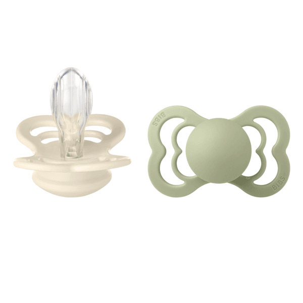 BIBS Supreme snuðin eru með fiðrilda laga skjöld. Túttan er flöt og úr siliconi. Túttan er mótuð til þess að draga úr þrýstingi á tönnum og kjálka. Koma í mörgum litum og tveirum stærðum, 0 mán+ og 6 mán+. Koma tvö saman í pakka.