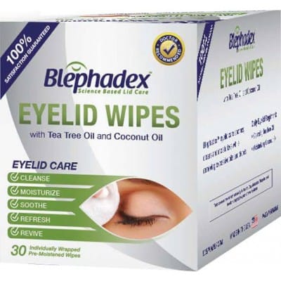 Blephadex™ Eyelid eru blautklútar sem hreinsa augnlokin. Inniheldur sérstaka blöndu af Tea Tree og coconut olíum. Hreinsar augnlokin, róar augnsvæðið og veitir raka