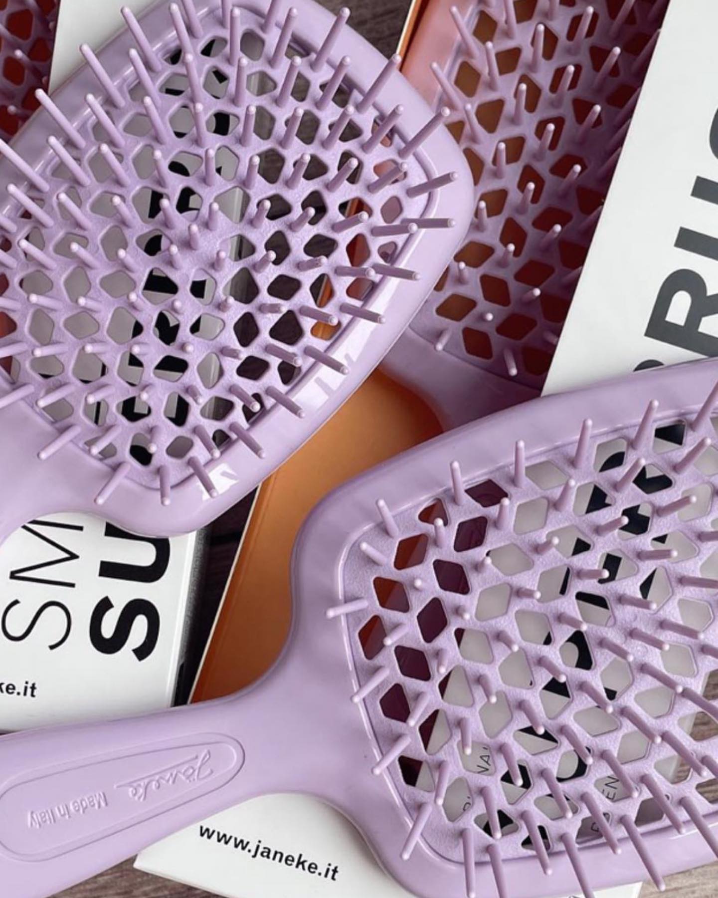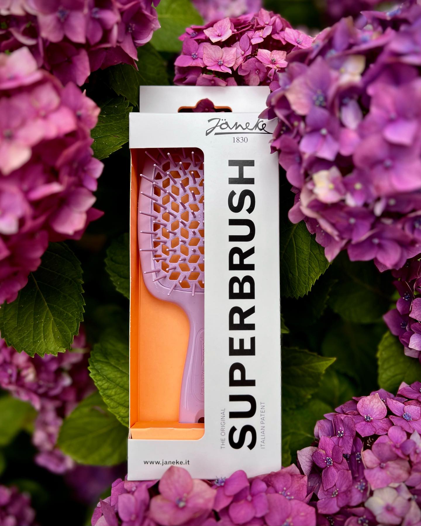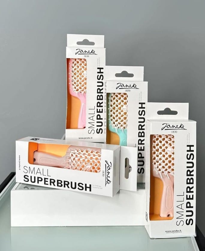 Superbrush hárburstinn greiðir vandlega í gegnum hárið. Þökk sé hönnun burstans og mjúkum pinnum. Burstinn rennur vel í gegnum hárið, hvort sem það er þurrt eða rakt. Einnig virkar hann vel í hárframlengingar. Götin á milli pinnana sjá til þess að heitt loft frá hárblásara dreifist jafnt um hárið. Það má nota burstann í sturtu. Þrífið burstann með vatni. Vörumerkið Jäneke hefur framleitt hágæða vörur allt frá 1830
