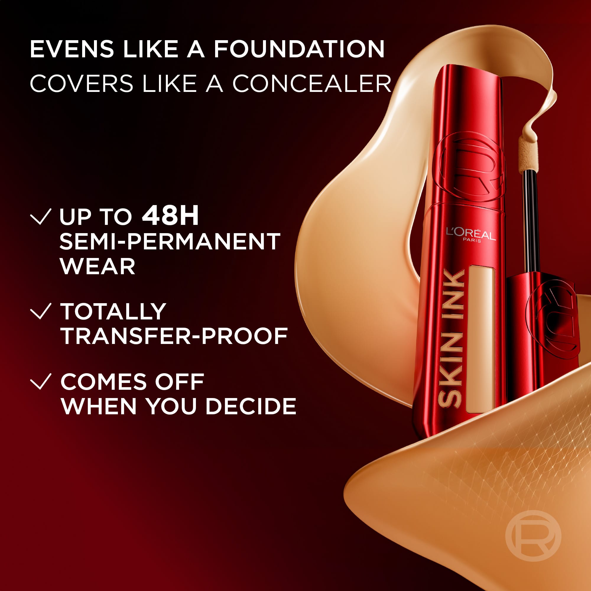 L’Oréal Paris Infaillible Skin Ink er næsta kynslóð farða sem stuðlar að langvarandi endingu förðunar og sameinar það besta úr hyljara og farða: endingargóður farði sem jafnar húðina eins og farði og hylur eins og hyljari.