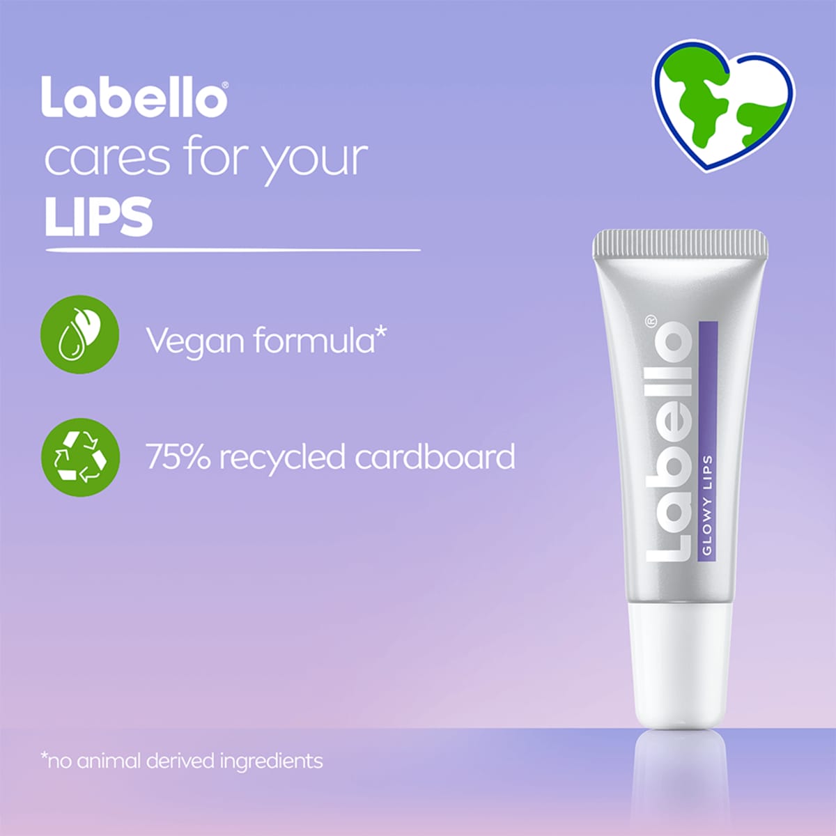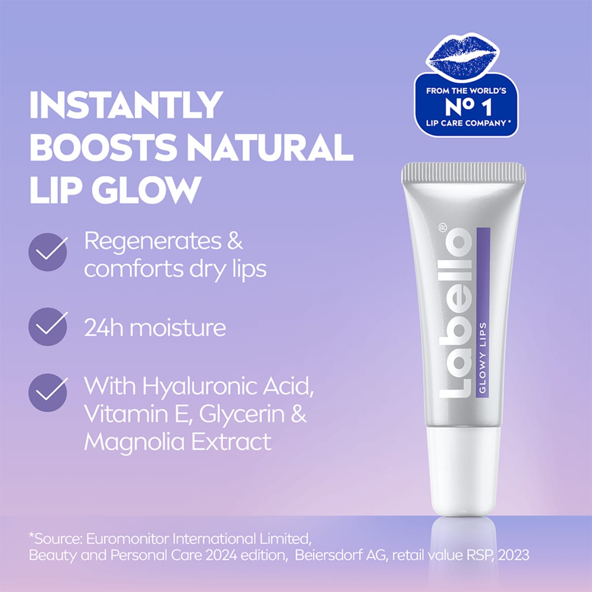 Labello Glowy Lips Clear er nærandi varasalvi sem styrkir strax náttúrulegan gljáa á vörunum þínum. Hann er með rakagefandi formúlu sem inniheldur hýalúrónsýrur, vítamín E og gýserín blandað magnólíu, sem veitir allt að 24 tíma rakagefandi eiginleika. Varasalvinn endurnýjar og nærir þurrar varir, sem skilar þeim mjúkum og með silki áferð. Labello er mildur við varirnar og þurrkar þær ekki út, sem gerir hann fullkominn fyrir daglega notkun. Með sinni nærandi formúlu og getu til að veita vörunum fallegan gljáa, er Labello Glowy Lips Clear fullkominn kostur til að halda vörum þínum mjúkum og geislandi allan daginn.