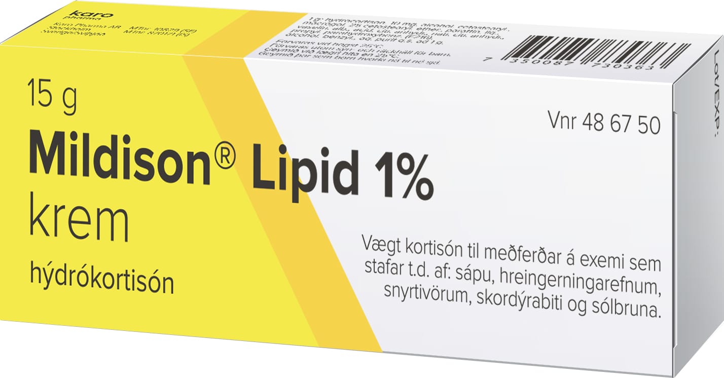 Mildison Lipid kremið er notað við ofnæmiseinkennum á húð eins og bólgum, kláða og útbrotum/exemi. Inniheldur Hýdrókortisón sem er vægur steri. Kremið er borið á staðbundið.