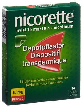 Nicorette inniheldur nikótín. Plásturinn er settur á þurrt, hárlaust svæði, eins og mjöðm og hann fjarlægður eftir 16 klst. Skipt er um svæði á líkamanum eftir dögum. Pakkinn inniheldur 14 stk af 15 mg plástrum