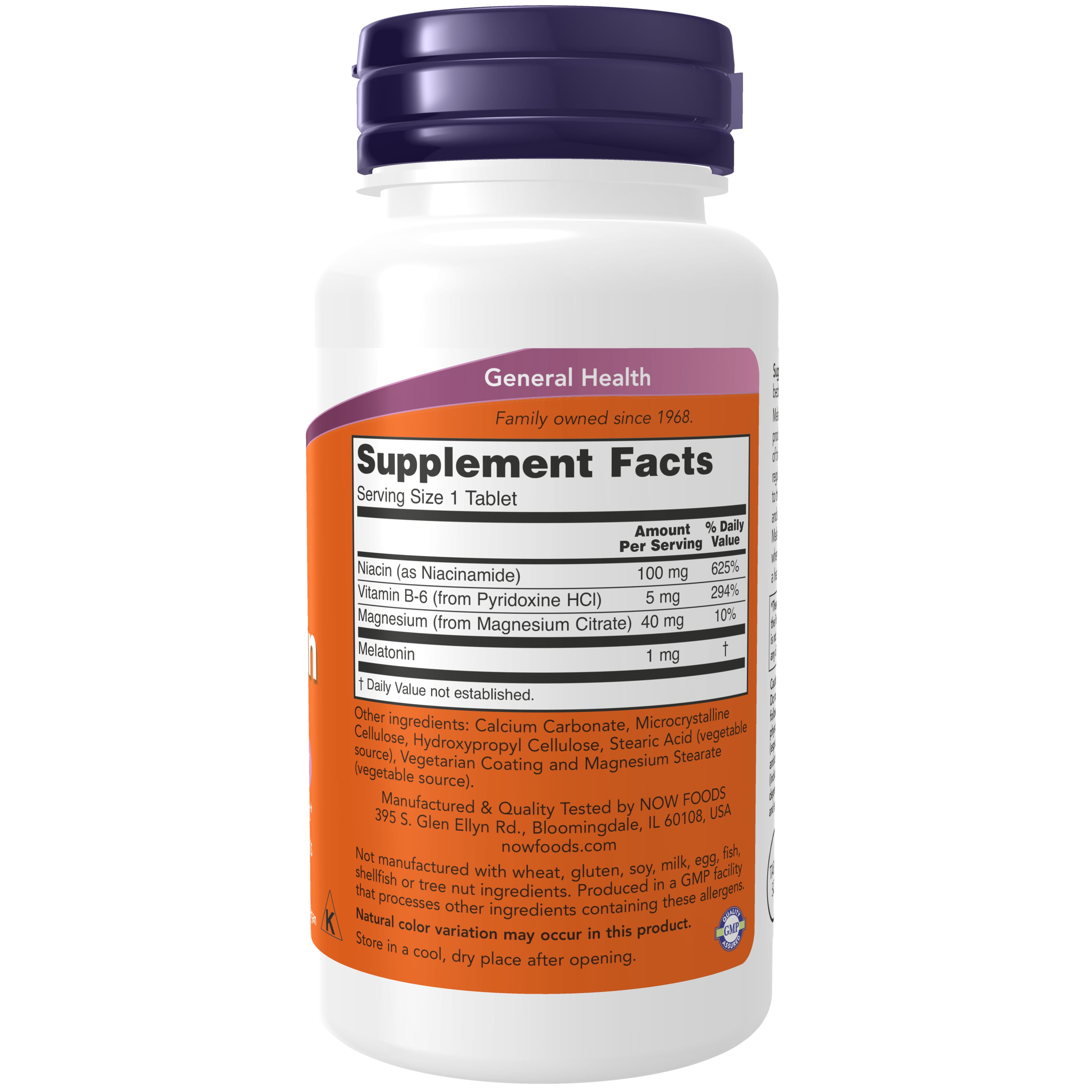 Now Melatónín 1 mg inniheldur hormónið melatónín. Melatónín stuðlar að því að draga úr þeim tíma sem þarf til að sofna. Ráðlagður skammtur er 1 tafla klukkutíma fyrir svefn. Now Melatónín er eingöngu ætlað fullorðnum.