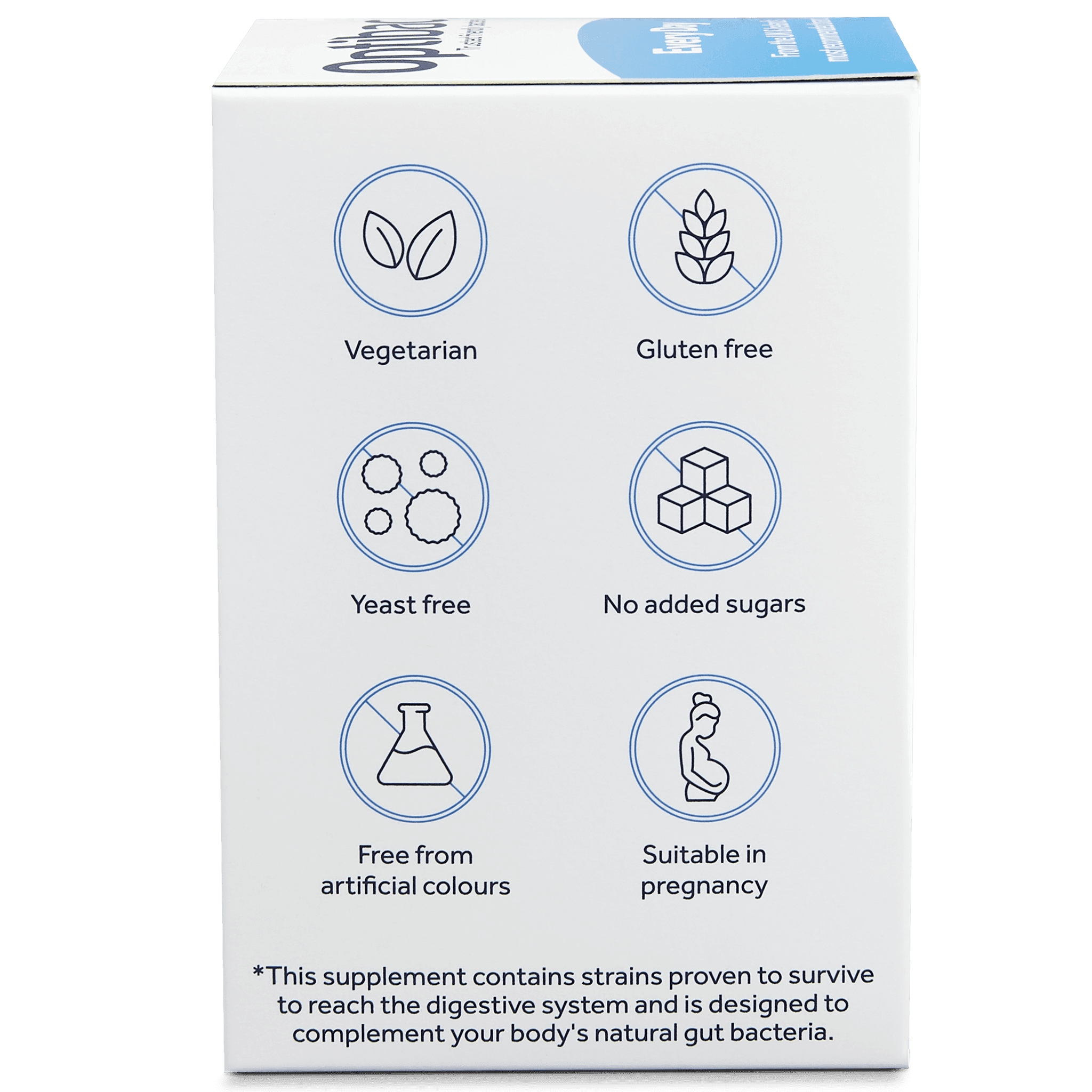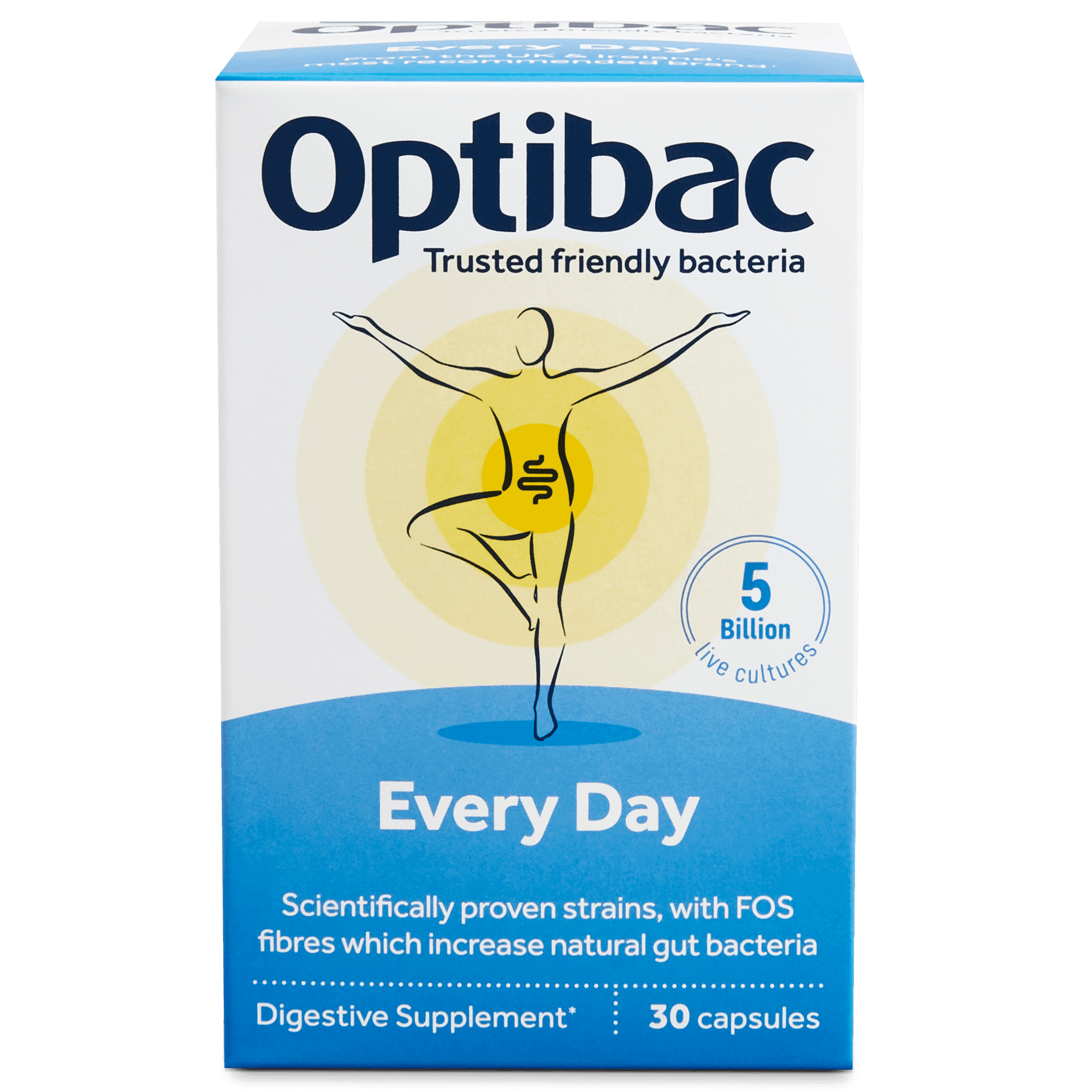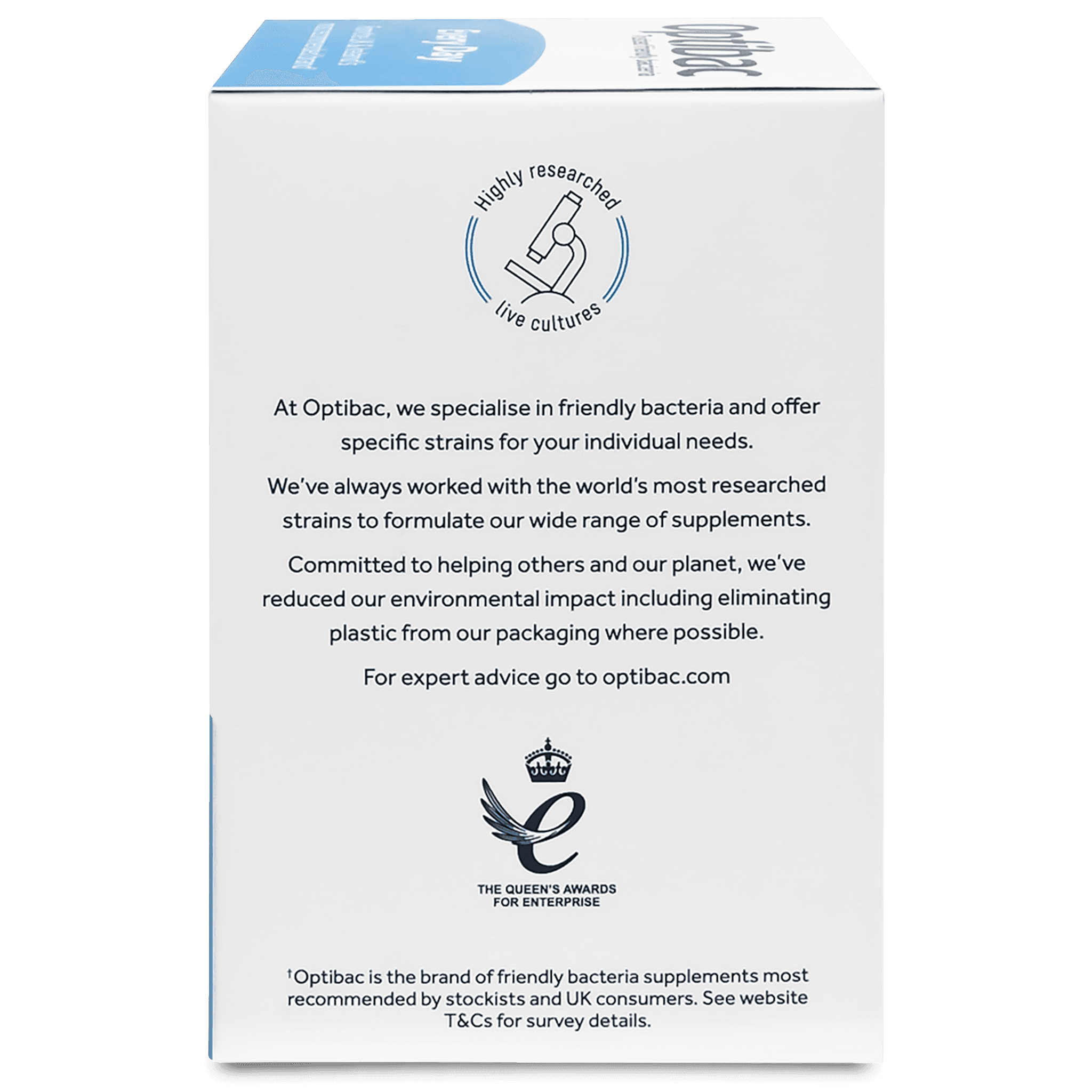 OptiBac For every day inniheldur að lágmarki 5 milljarða af 6 vel rannsökuðum bakteríum og auk þess prebiotic trefjar FOS, til að viðhalda góðri meltingarflóru. Þessir gerlar dreifa sér vel um allt meltingarkerfið, setjast að og framleiða vinveitta flóru til að tryggja hlutfallið milli góðra og slæmra baktería í meltingunni. Pribiotic trefjarnar eru í raun náttúruleg fæða fyrir góðar bakteríur og bæta vaxtaskilyrði þeirra. For every day er þess vegna góð forvörn fyrir heilbrigða meltingu. Bakteríurnar þekja svæði í meltingarveginum og varna óæskilegum bakteríum aðgang og hamla þeim að setjast að. Góð meltingarflóra er auk þess mikilvæg til að viðhalda heilbrigðu ónæmiskerfi og gegnir lykilhlutverki við fæðuniðurbrot m.a. með því að auka ensímframleiðslu. Allir gerlarnir frá OptiBac eru sýruþolnir og þarf ekki að geyma þá í kæli. Enginn viðbættur sykkur. GMO free.