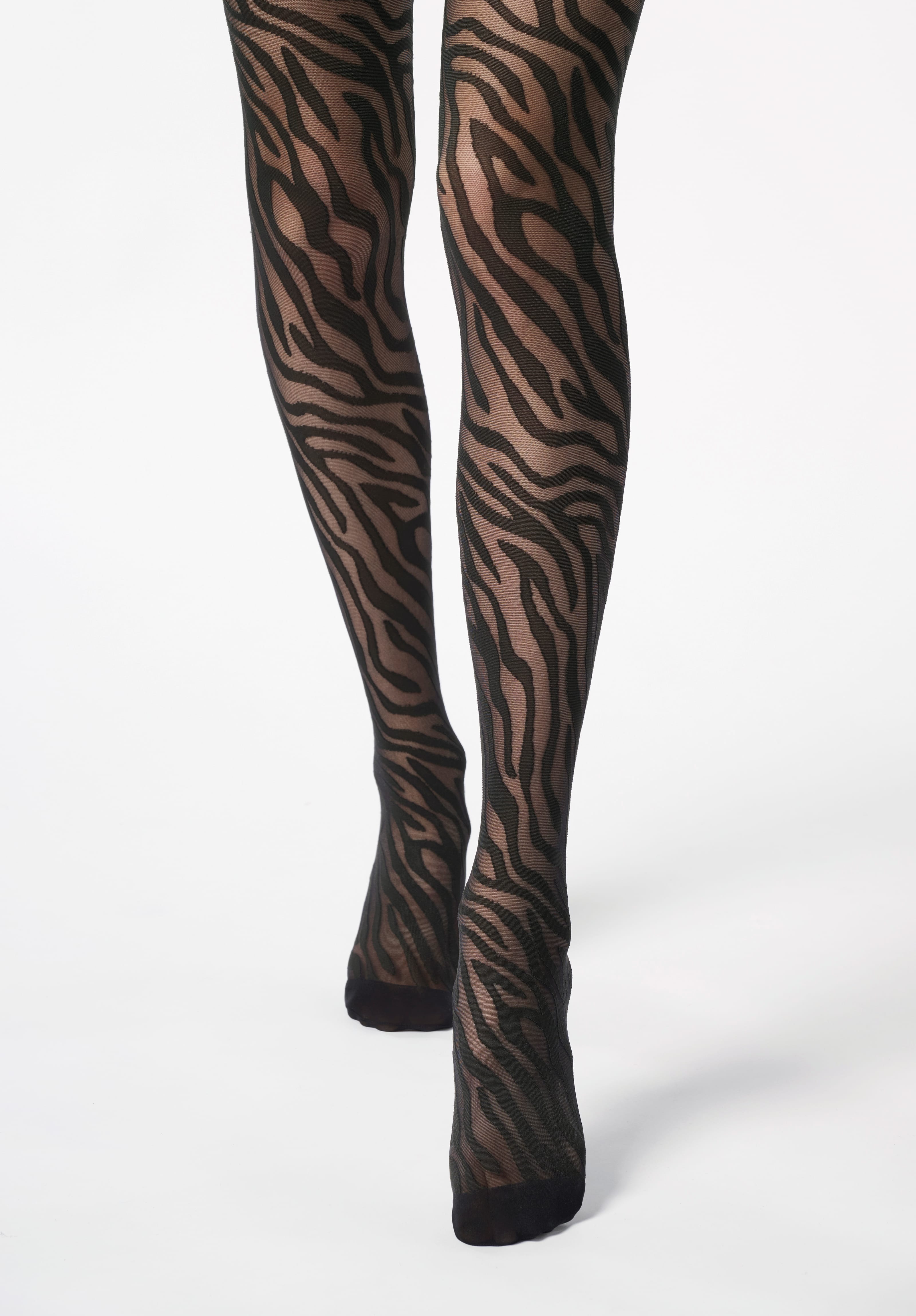 30 den hálfgegnsæjar sokkabuxur með sebramynstri. Flatir saumar og þægilegur mittisstrengur. Með skrefbót.