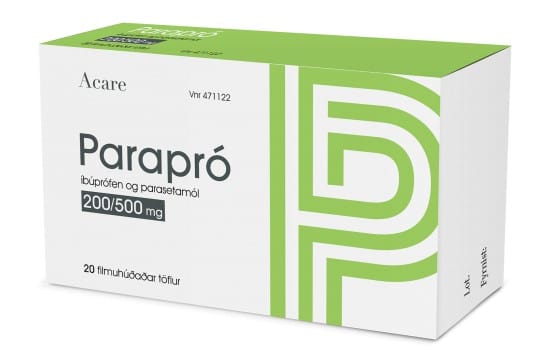 Parapró er ætlað til notkunar hjá fullorðnum, 18 ára og eldri. 1 tafla allt að þrisvar á dag með vatni. Látið minnst 6 klst. líða á milli skammta. Lesið vandlega upplýsingar á umbúðum og fylgiseðli fyrir notkun lyfsins. Leitið til læknis eða lyfjafræðings sé þörf á frekari upplýsingum um áhættu og aukaverkanir. Sjá nánari upplýsingar um lyfið á [sérlyfjaskrá]( https://www.serlyfjaskra.is/ShowResult.aspx?d=1&p=1&n=0&i=1&t=1&a=0&at=0&m=0&q=parapr%c3%b3)