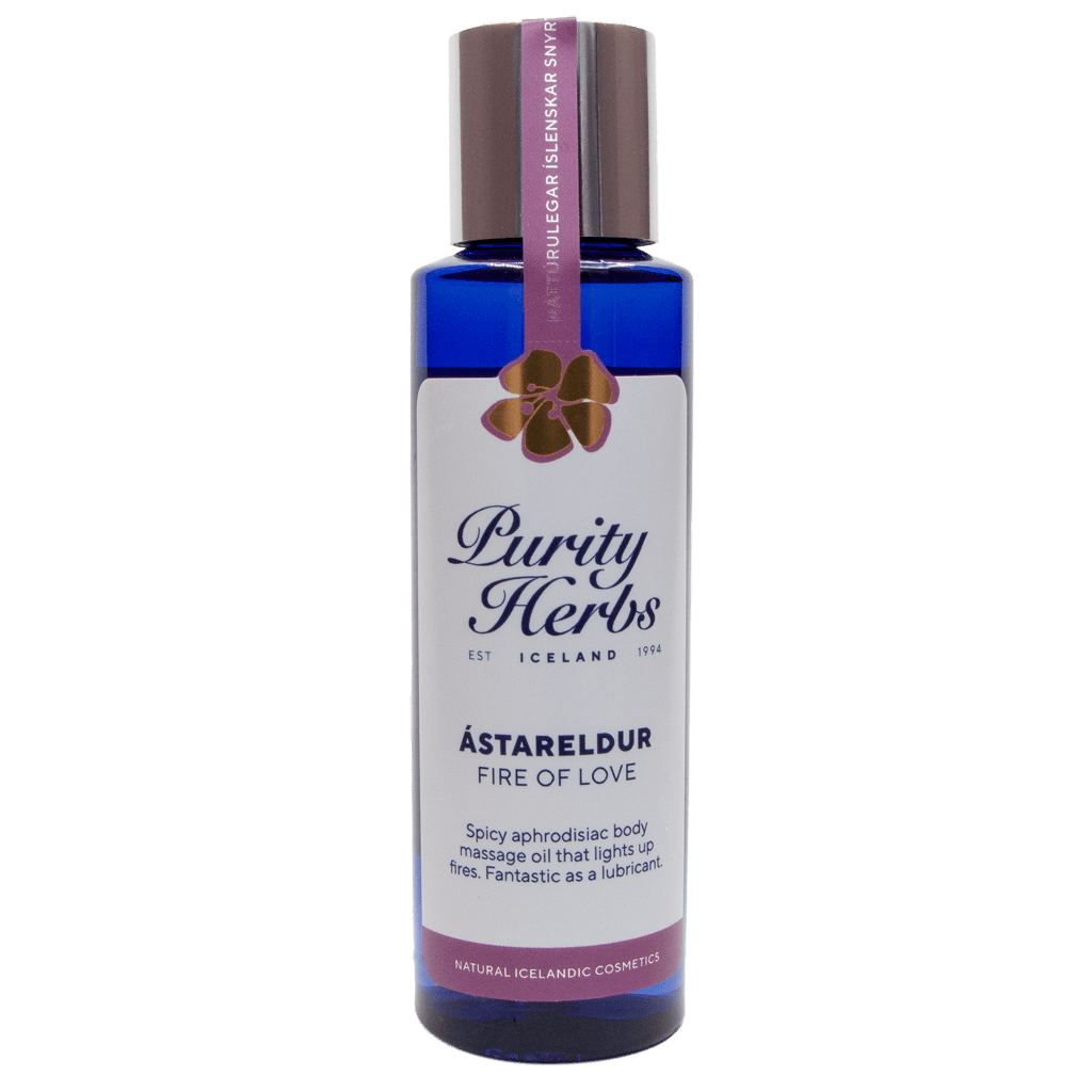 Mögnuð, krydduð og kynörvandi nuddolía sem kveikir eld og eykur unað í ástarlífinu. Ástareldur er hin fullkomna líkams nuddolía sem hefur áhrif bæði á huga og líkama og er hægt að nota á allan líkamann.