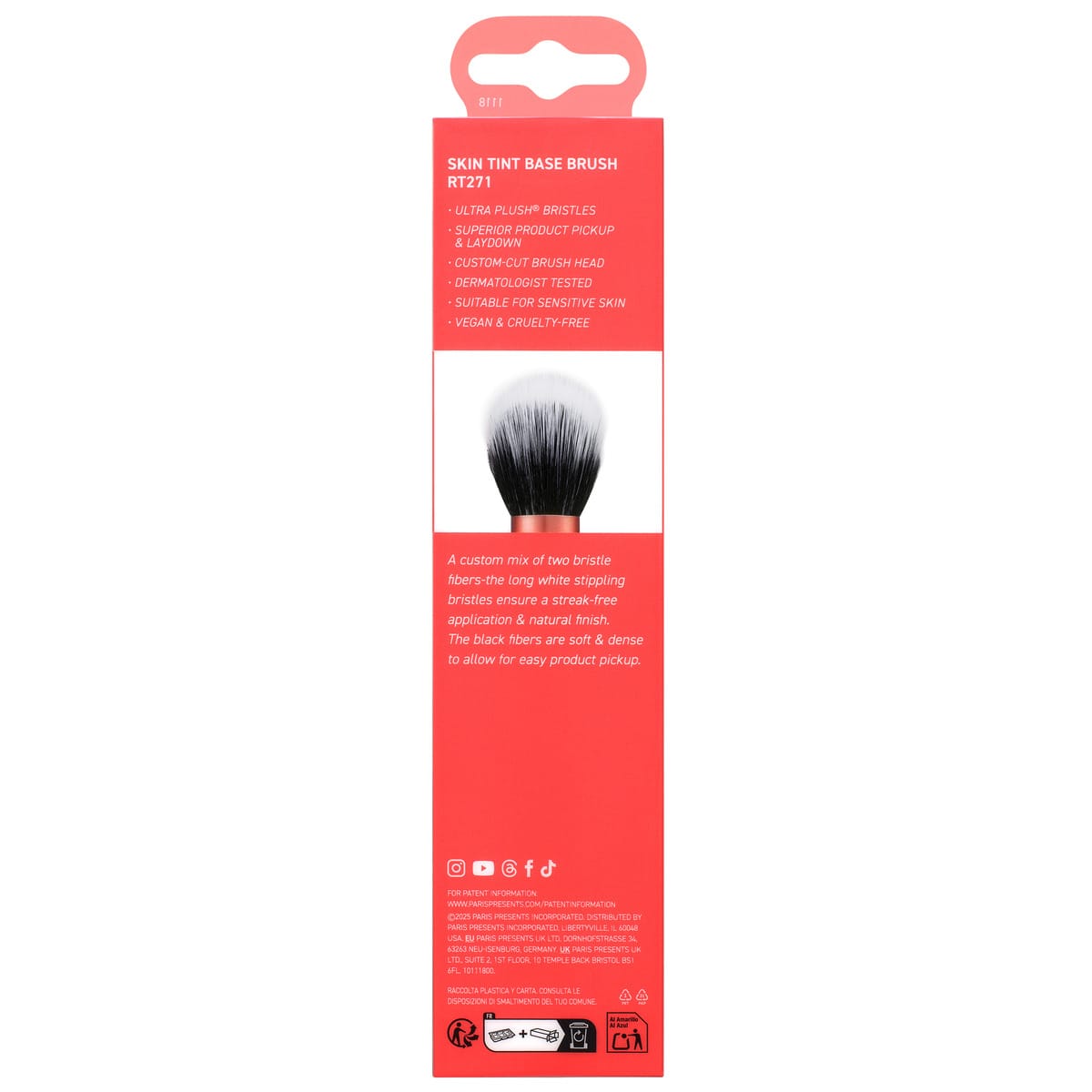 Burstinn er blanda af tveimur gerðum af "hárum" og er fullkominn til að blanda léttar formúlur. Hvítu burstahárin tryggja auðvelda ásetningu og náttúrulega áferð. Svörtu trefjahárin eru mjúk og þétt og auðvelda upptöku á farðanum. Burstinn tryggir rákalausa áferð.