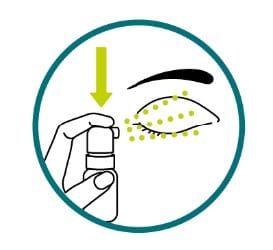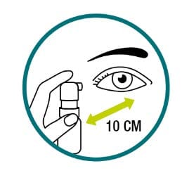 Vörunni er úðað á lokað auga og léttir fljótt á einkennum eins og þurrki, pirringi og rauðum augum.