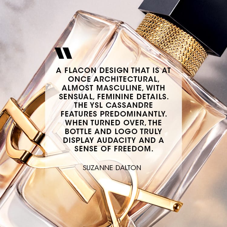 Glasið er táknrænt fyrir glæsileika og lúxus. YSL lógóið frjálslega beygt og fest við glerið eins og gimsteinn. Gyllt keðjan setur kynþokkafullan blæ á svartlakkað lokið.